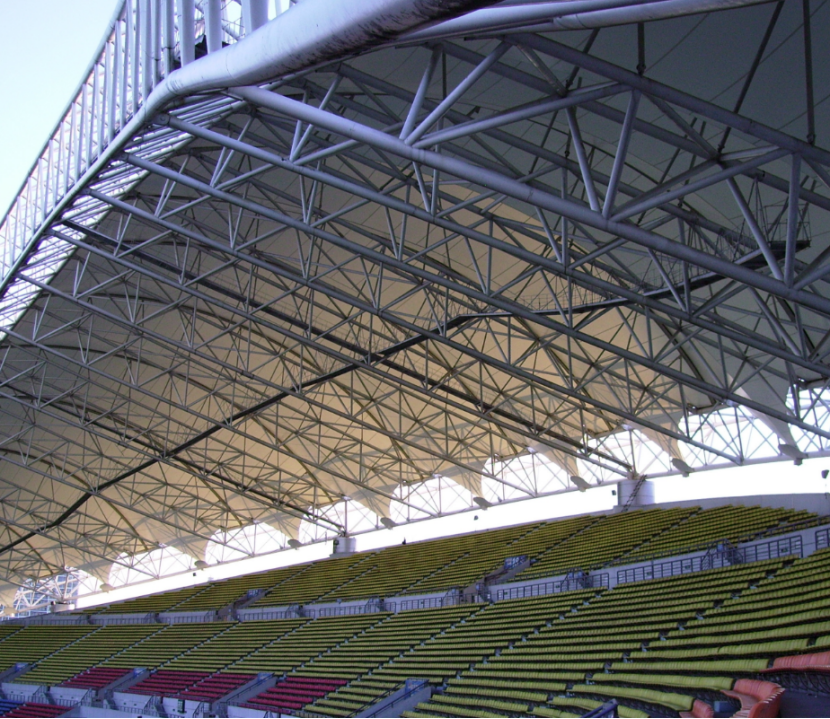 骨架式膜結(jié)構(gòu)的顯著特點(diǎn)在于:膜不是維持結(jié)構(gòu)體系存在的必要結(jié)構(gòu)單元,又不僅僅是單純地覆蓋屋面系,而是充分發(fā)揮了采光建筑功能和高強(qiáng)度受力特性。骨架式膜結(jié)構(gòu)是膜結(jié)構(gòu)工程中使用較多的一種形式。