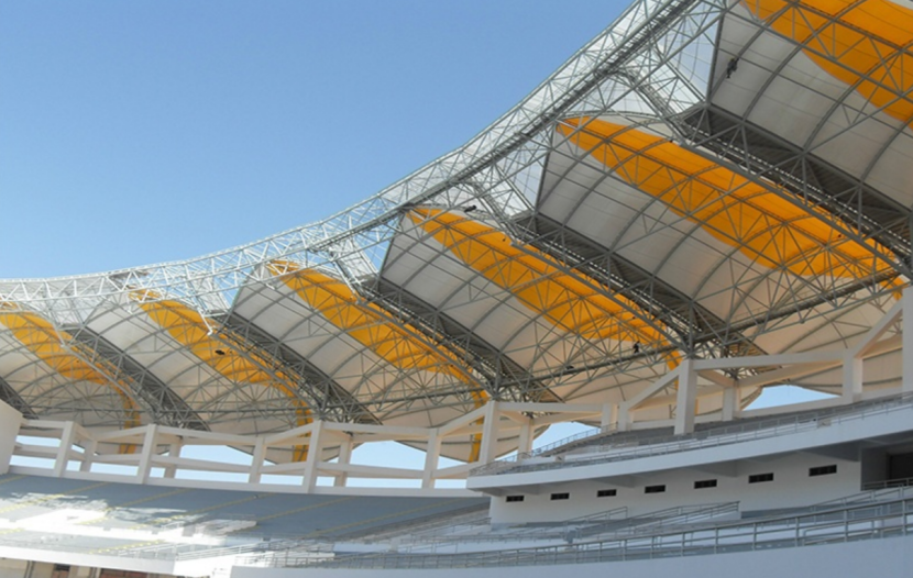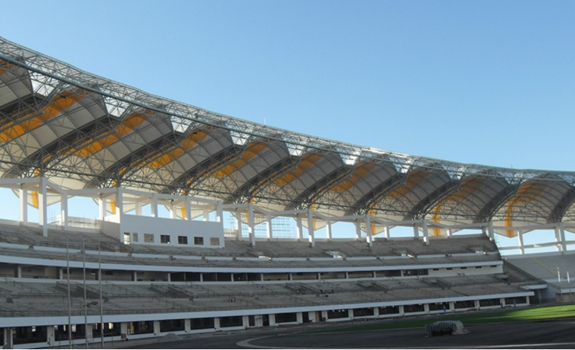 由美尚恩膜結(jié)構(gòu)承包的非洲肯尼亞體育中心膜結(jié)構(gòu),它的占地為40000平方米,耗時(shí)140天,于2017年12月完成施工。外形美觀,使用空間大,膜材與鋼結(jié)構(gòu)工程相結(jié)合,是一種典型的張拉膜結(jié)構(gòu)。