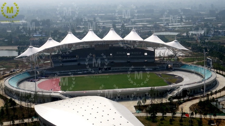 There are 400 meters standard track and field stadium and standard soccer field .The stadium is built around the audience area which can accommodate 13096 people.The stands are covered with PTFE membrane material which expands 15,000 square meters.